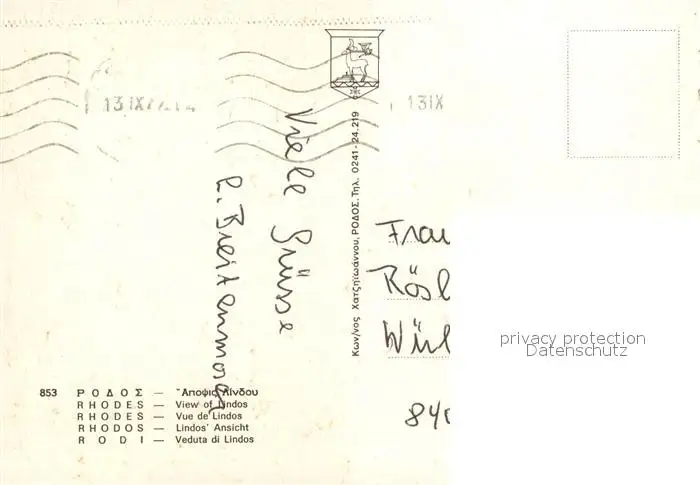 Rhodos_Rhodes_aegaeis Veduta di Lindos Rhodos_Rhodes_aegaeis postalisch nicht gelaufen nach 1965 Erhaltung siehe scans [WerneD78] WernPID7