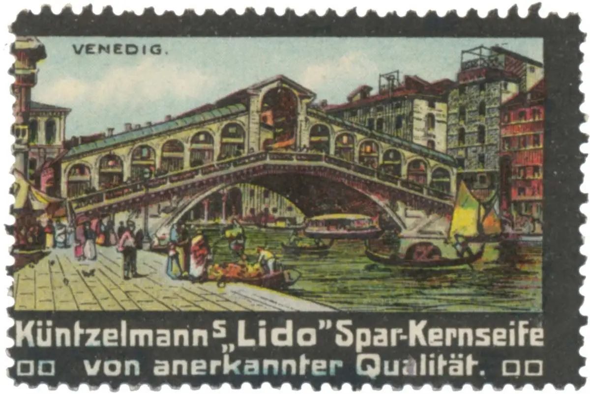 Küntzelmann's Lido Seifenpulver von anerkannter Qualität, Größe/Zustand: 3x5 , guter Zustand, Original alte Reklamemarke die seinerzeit für die Werbung benutzt wurde