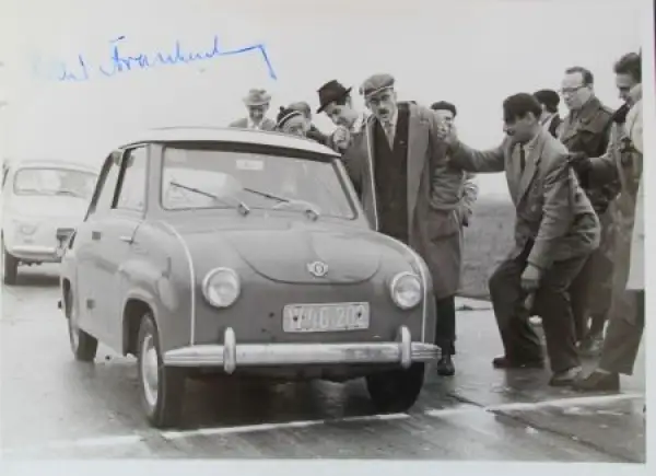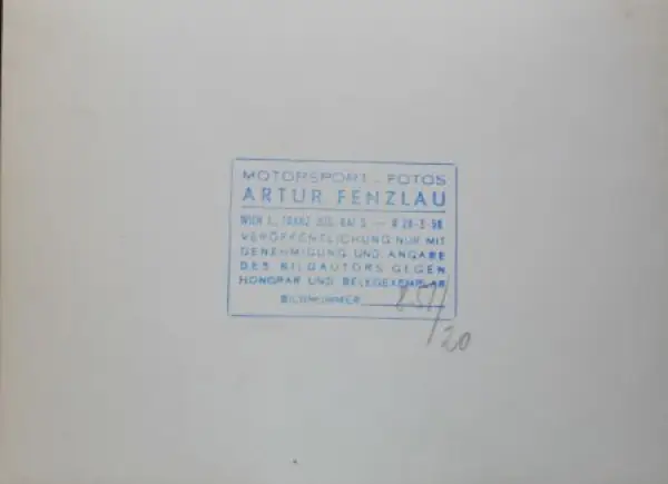 Zustand: 2Originalautogramm auf Foto des Journalisten und Porsche-Fahrers (1922-1973)Motorsport-Fotos Artur Fenzlau, Wien
