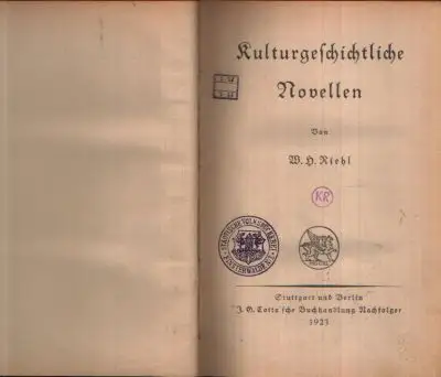 Kulturgeschichtliche Novellen; W.H. Riehl; Romane; Erzählungen: Der Stadtpfeifer; Im Jahr des Herrn; Ovid bei Hofe; Die Werke der Barmherzigkeit; Amphion; Gräfin Ursula; Meister Martin Hildebrand; Die Lehrjahre eines Humanisten