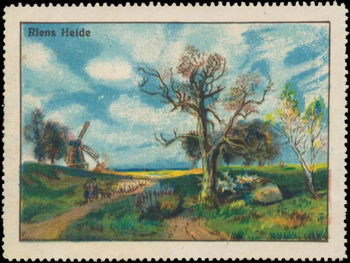 Riens Heide, Naturschutzgebiet, Mühle, Größe/Zustand: 6x8 , leicht fleckig, Original alte Reklamemarke die seinerzeit für die Werbung benutzt wurde