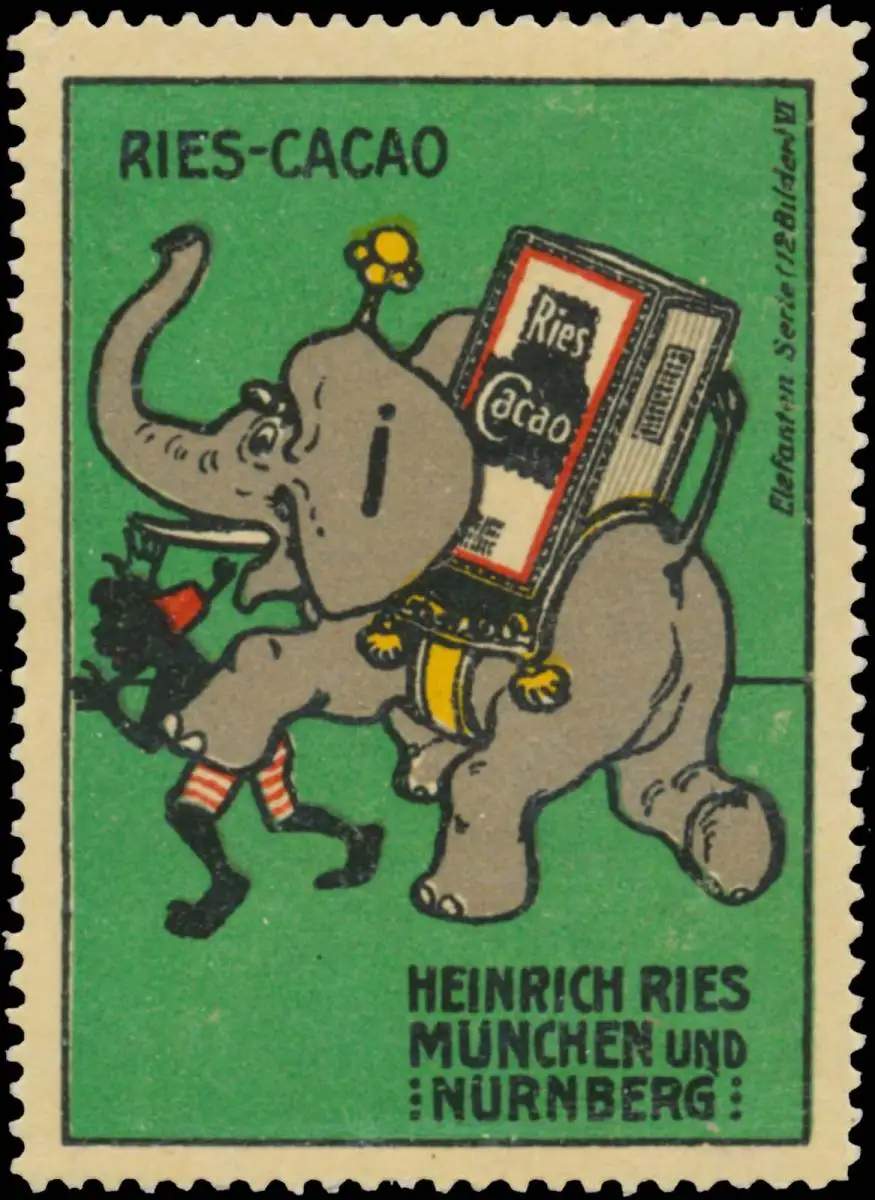 Buchstabenserie, Buchstabe I, Elefanten-Serie: VI, Größe/Zustand: 6x4 , guter Zustand, Original alte Reklamemarke die seinerzeit für die Werbung benutzt wurde