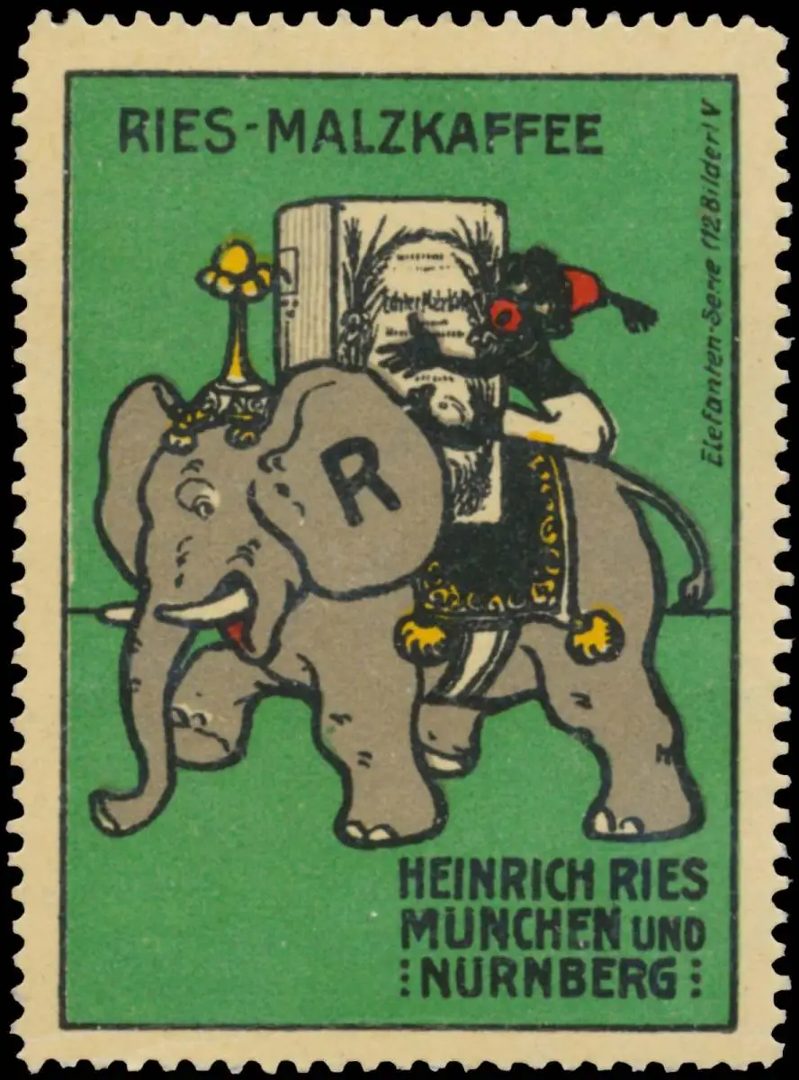 Buchstabenserie, Buchstabe R, Elefanten-Serie: V, Größe/Zustand: 6x4 , guter Zustand, Original alte Reklamemarke die seinerzeit für die Werbung benutzt wurde
