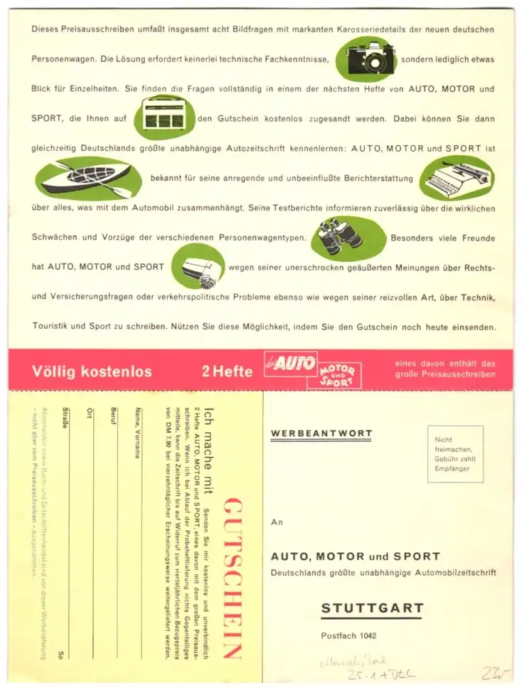 Riesen-AK Stuttgart, Preisausschreiben für einen Mercedes-Benz 220 SE, Auto Motor und Sport