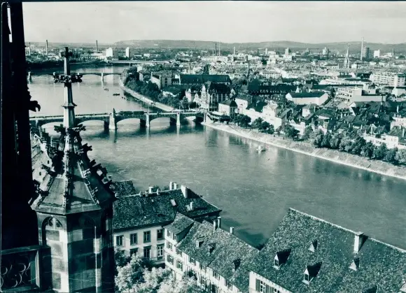 Riesen Ak Basel Bâle Stadt Schweiz, Blick vom Münster