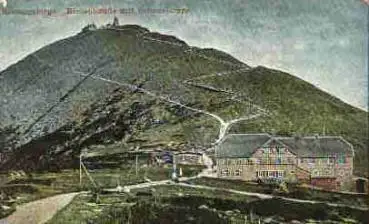 Riesenbaude mit Schneekoppe Riesengebirge * um 1910