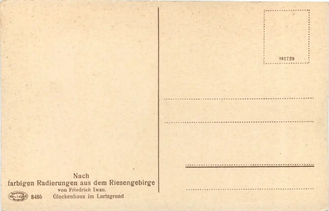 Riesengebirge - Radierung Friedrich Iwan - Glockenhaus im Lurtzgrund -730410