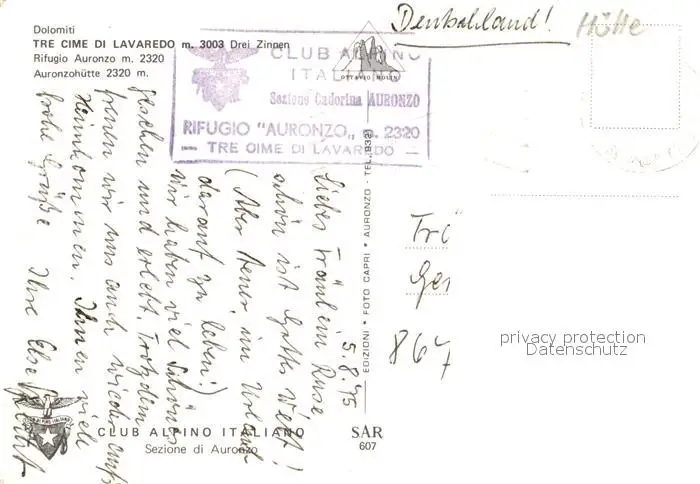 Rifugio_Auronzo Tre Cime di Lavaredo postalisch gelaufen 1975 Erhaltung siehe scans [PaolaD17] PaolPID1
