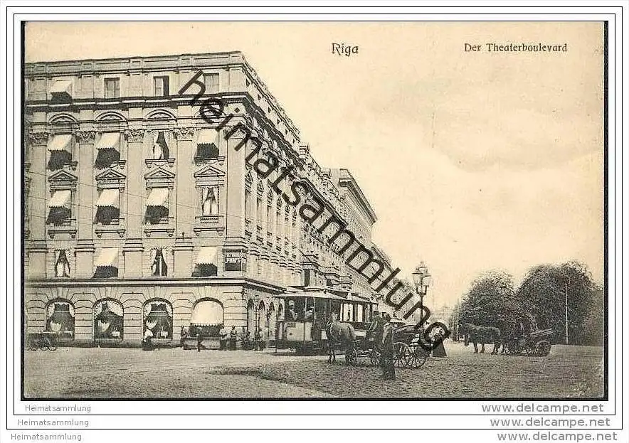 Riga - Der Theaterboulevard - Strassenbahn - Pferdekutschen