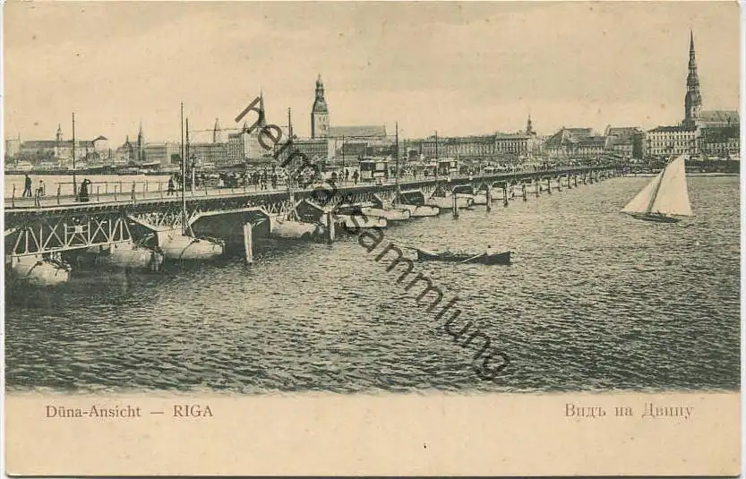 Riga - Düna-Ansicht - Pontonbrücke - Verlag Hebensperger & Co. Riga ca. 1910