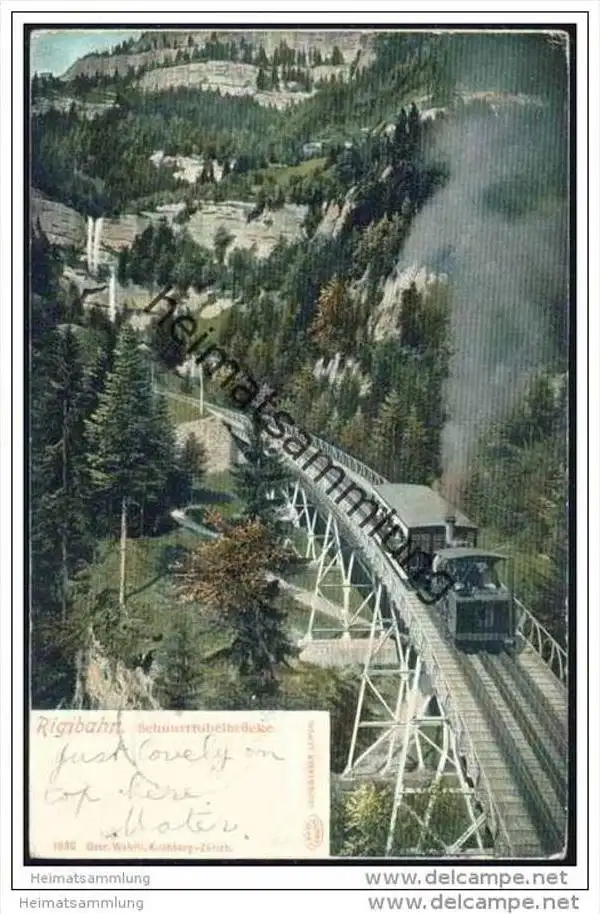 Rigibahn - Schnurtobelbrücke - Verlag Gebr. Wehrli Kilchberg - Briefmarke entfernt - Gebrauchsspuren (E4752) gel. 1905