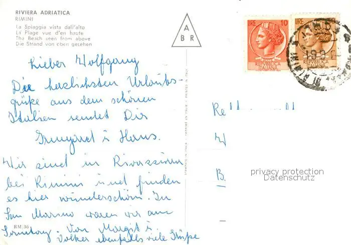 Rimini La spiaggia vista dall alto Rimini postalisch gelaufen nach 1965 Erhaltung siehe scans [FriedD77] Frierer