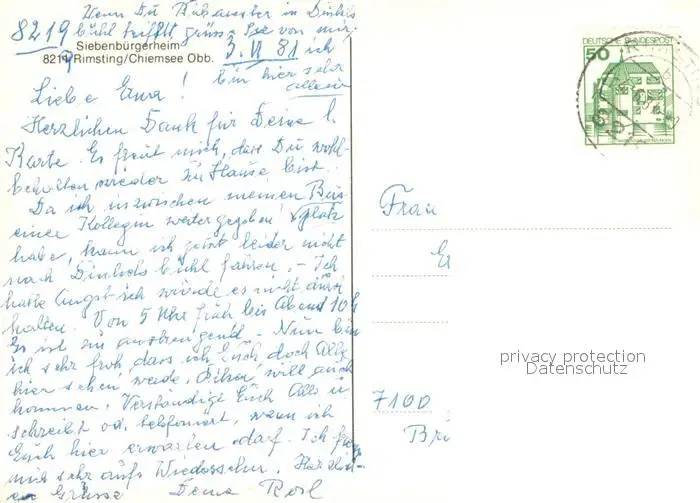 Rimsting Siebenbuergerheim Rimsting Rimsting postalisch gelaufen 1981 Erhaltung siehe scans [WerneD78] WernPID7