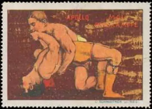 Apollo Mai-Ringkämpfe, Sport, ringen, Größe/Zustand: 5x7 , beschädigt, Original alte Reklamemarke die seinerzeit für die Werbung benutzt wurde
