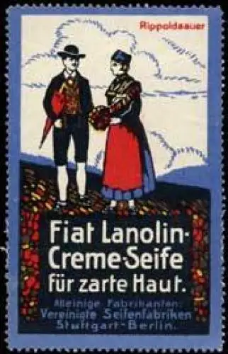 Fiat Lanolin-Creme-Seife für zarte Haut. Kosmetik, Größe/Zustand: 7x5 , guter Zustand, Original alte Reklamemarke die seinerzeit für die Werbung benutzt wurde