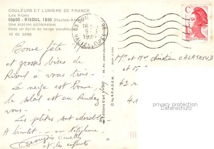 Risoul Station des Sports d'hiver Risoul postalisch gelaufen 1990 Erhaltung siehe scans [FriedD77] Frierer