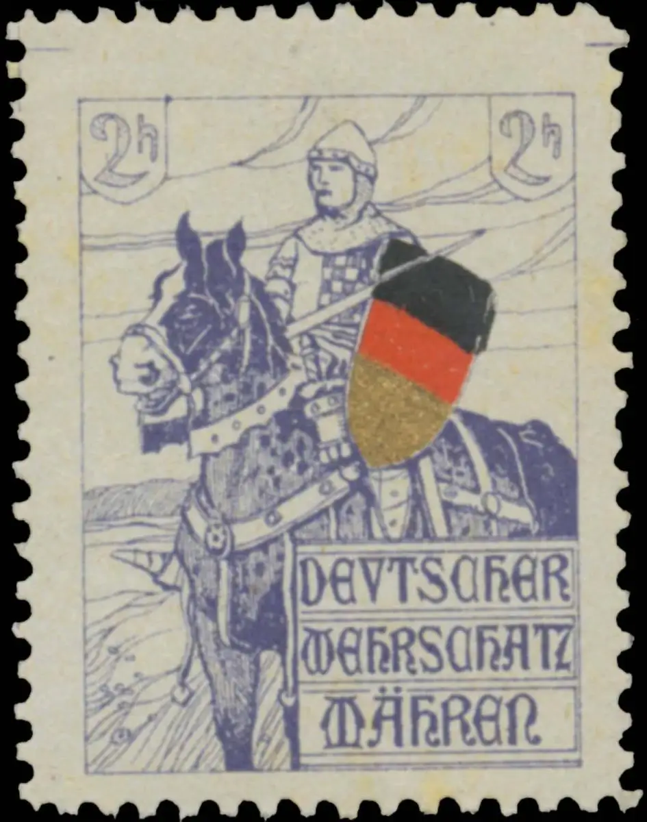 Deutscher Wehrschatz Mähren, Spendenmarke, Wehrschatzmarke, Größe/Zustand: 3x3 , guter Zustand, Original alte Reklamemarke die seinerzeit für die Werbung benutzt wurde