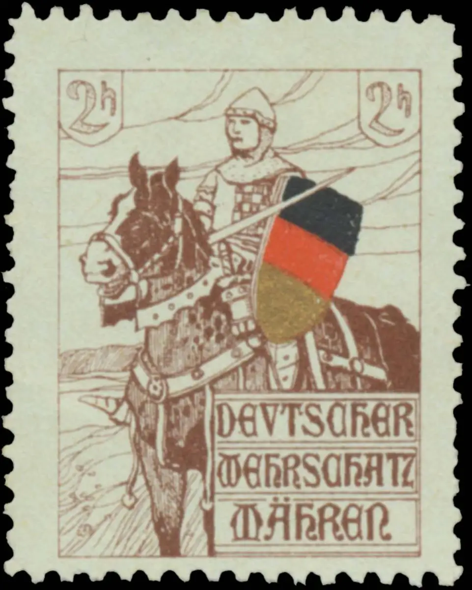 Deutscher Wehrschatz Mähren, Spendenmarke, Wehrschatzmarke, Größe/Zustand: 3x3 , guter Zustand, Original alte Reklamemarke die seinerzeit für die Werbung benutzt wurde