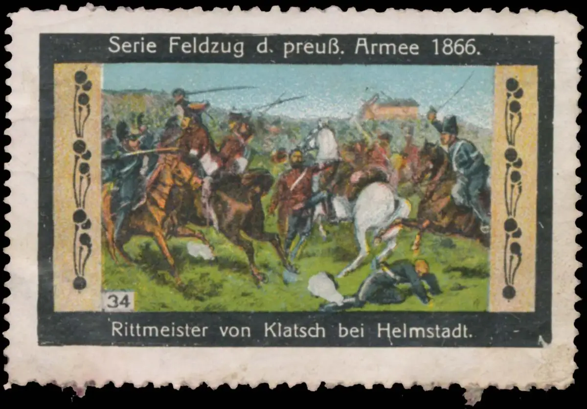 Militär-Serie: Feldzug der preußischen Armee 1866, Nr. 34, Größe/Zustand: 4x6 , leicht fleckig, Original alte Reklamemarke die seinerzeit für die Werbung benutzt wurde
