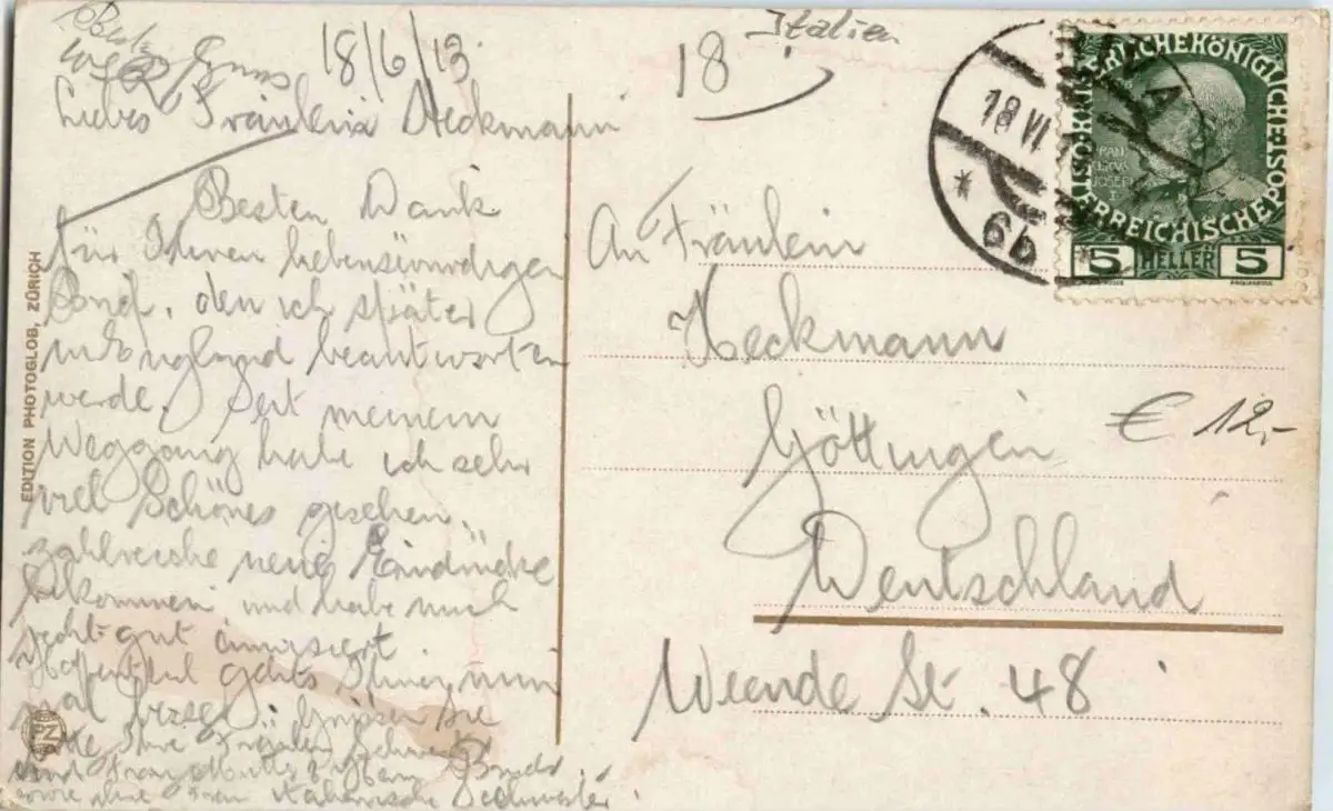 Danke. Alles Bestens. Können Sie mir allenfalls mitteilen, aus welchem Jahr die Postkarte stammt? Besten Dank.