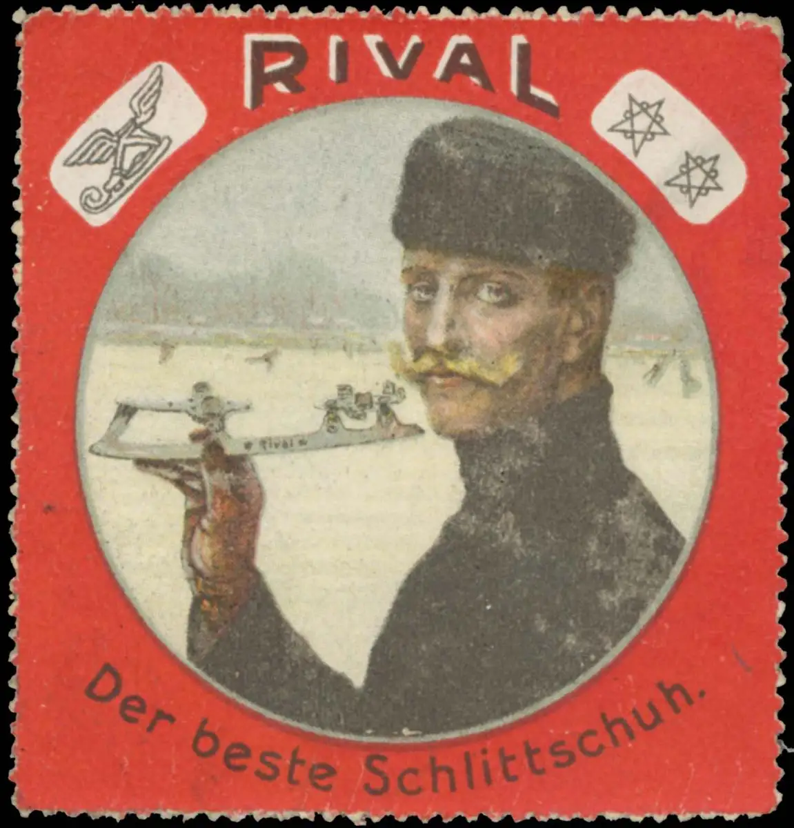 Wintersport , Größe/Zustand: 5x5 , Fehldruck, guter Zustand, Original alte Reklamemarke die seinerzeit für die Werbung benutzt wurde