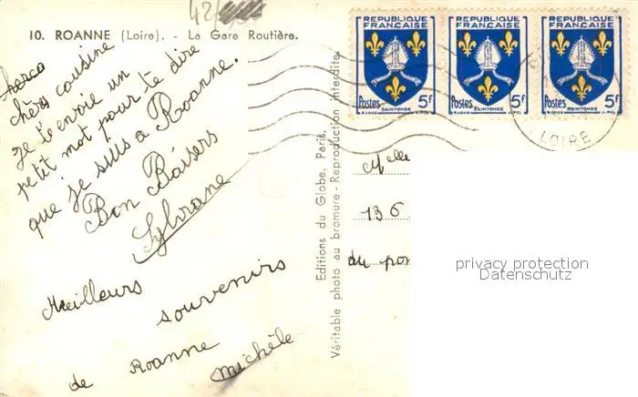 Roanne_Loire La Gare Routière Roanne Loire postalisch gelaufen 1921-1965 Erhaltung siehe scans [FriedD77] Frierer