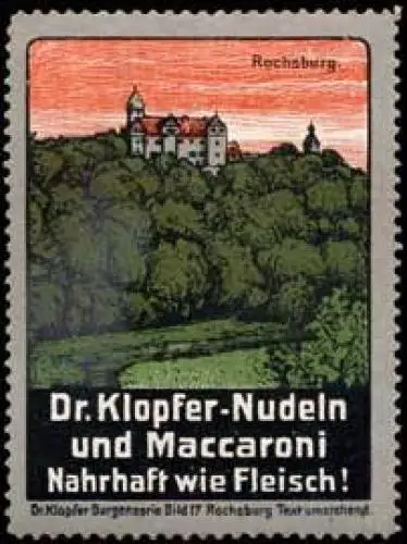 Dr. Klopfer-Nudeln und Maccaroni, Burgenserie Bild 17, Größe/Zustand: 5x4 , guter Zustand, Original alte Reklamemarke die seinerzeit für die Werbung benutzt wurde