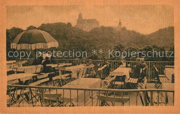 Rochsburg Restaurant Terrasse Blick auf das Schloss Rochsburg postalisch nicht gelaufen 1921-1965 Erhaltung siehe scans [FriedD77] Frierer