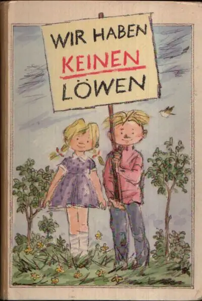 Wir haben keinen Löwen; Rodrian, Fred; Klemke, Werner; Kinderbuch; Geschichten; Kleines Dorf; Baut Tierpark; Alle Tiere; Außer Löwe; Denken nach; Woher bekommt man Löwen