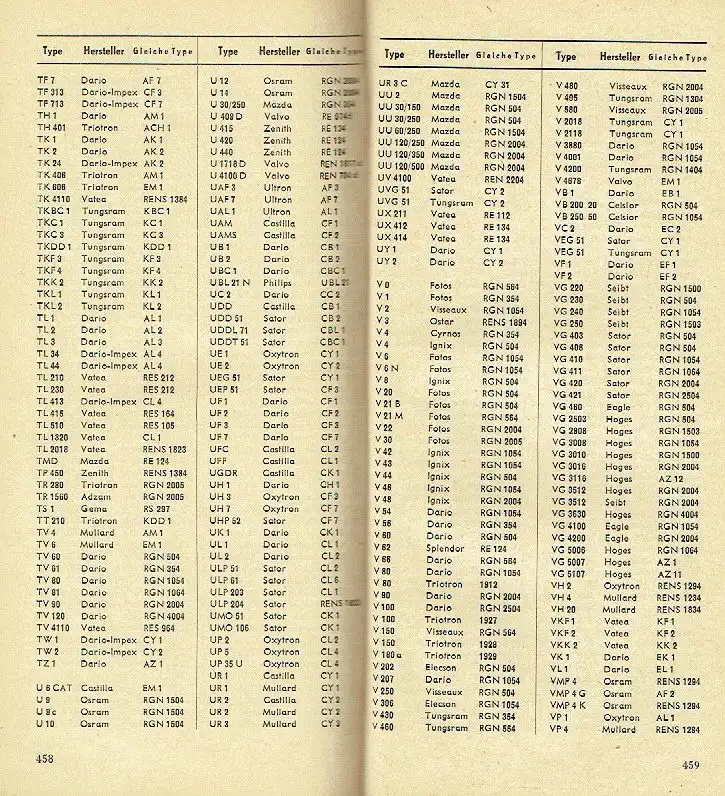 guter Zustand, Gebrauchs- und Alterungsspuren: Einbandecken und -kanten teils mehr oder weniger abgenutzt - Vorsatz und Titel mit altem Stempel - Papier teils etwas vergilbt, aber Seiten sauber und ordentlich - Seite 24 unten ca. 2 cm eingerissen - Vorsatzseite mit größerem Dreiangel im senkrechten Rand, dabei ca. 1 cm eingerissen, Der Entwicklung unserer Friedenswirtschaft im Rahmen des Fünfjahrplans will die vorliegende vierte Auflage des Röhrentaschenbuches dienen. Das Taschenbuch ist aus den Bedürfnissen der Praxis entstanden und soll alle Werktätigen der Rundfunkindustrie zu fortschrittlichen, aktivistischen Leistungen befähigen. Gleichzeitig hoffen wir, auch dem Nachwuchs in der Werkstatt eine übersichtliche Röhrentabelle in die Hand zu geben. Diese vierte Auflage ist vollkommen überarbeitet und bedeutend erweitert worden. Sie enthält alle deutschen und eine Auswahl der gebräuchlichsten Spezial- und Auslandsröhren. Um das Röhrentaschenbuch stets auf dem neuesten Stand halten zu können, wurde zwischen den verschiedenen Serien Raum für weitere Nachtragungen vorgesehen. Die Zusammenfassung von Röhrendaten und Sockelschaltbildern setzt die Gefahr der Verwechslung von Sockelschaltbildern herab. A-RöhrenB-RöhrenC-RöhrenD-RöhrenE-RöhrenK-RöhrenL-RöhrenM-RöhrenN-RöhrenO-RöhrenP-RöhrenQ-RöhrenR-RöhrenS-RöhrenT-RöhrenU-RöhrenV-RöhrenW-RöhrenRöhren der ZahlenreiheGleichrichter-RöhrenStromtore (Thyratrons)Auslands-Röhren der ZahlenreiheStromregel-RöhrenSpannungsregel-RöhrenRöhrenvergleichstabelleErläuterungen, Halbleinen, ca. 10 x 21, 478 Seiten mit zahlreichen Bildern