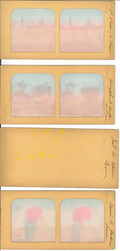 o. O., Vlg. [ca. 1880]. 4 Orig.-Photographien (Albumen) zu je einer Stereophotographie auf Karton mont. je 8, 7 x 17, 6 cm. 1 Photogr. einger.