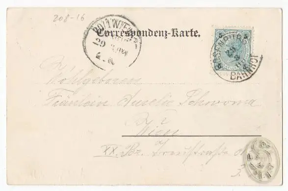 Bemerkungen: Gelaufen: Rosenburg - Wien, 1900.