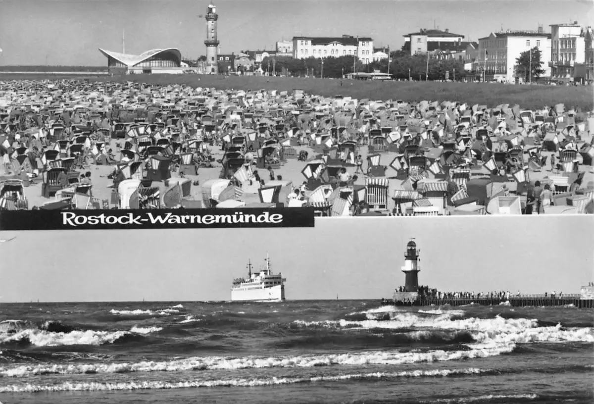 Rostock-Warnemünde Strand Leuchtturm Fährschiff glca.1990 170.223