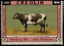Hamburg, 1910, Kuh, Creolin 2% in Kalkmilch vertreibt Fliegen aus den Ställen, Serie IV, Bild 9 , Größe/Zustand: 4x6 , guter Zustand, Original alte Reklamemarke die seinerzeit für die Werbung benutzt wurde
