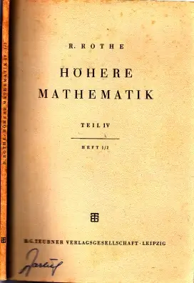 Höhere Mathematik für Mathematiker,Physiker, Ingenieure Teil IV, Heft 1/2; Teubners Mathematische Leitfäden, Band 33/34; R. Rothe; mathematik; R. Rothe