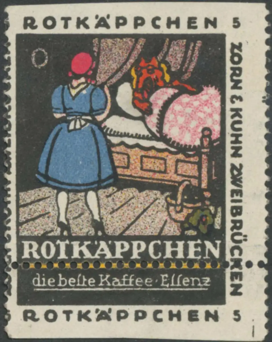 Märchen, Wolf, Nr. 5, Größe/Zustand: 5x4 , Fehldruck, beschädigt, Original alte Reklamemarke die seinerzeit für die Werbung benutzt wurde