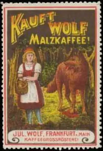 Kauft Wolf Malzkaffee! Märchen, Größe/Zustand: 6x4 , guter Zustand, Original alte Reklamemarke die seinerzeit für die Werbung benutzt wurde