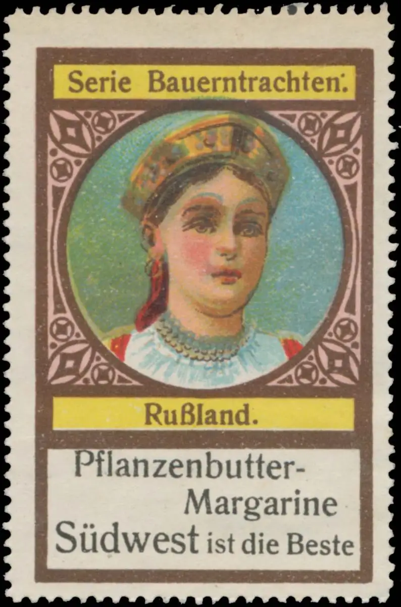 Serie Bauerntrachten, Pflanzenbutter-Margarine Südwest ist die Beste, Größe/Zustand: 6x4 , guter Zustand, Original alte Reklamemarke die seinerzeit für die Werbung benutzt wurde