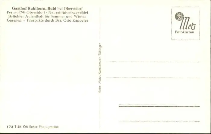 Rubi Rubi Gasthof Rubihorn * Oberstdorf postalisch nicht gelaufen 1921-1965 Alte Ansichtskarte Postkarte