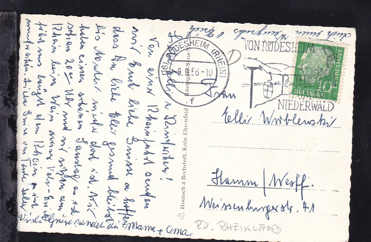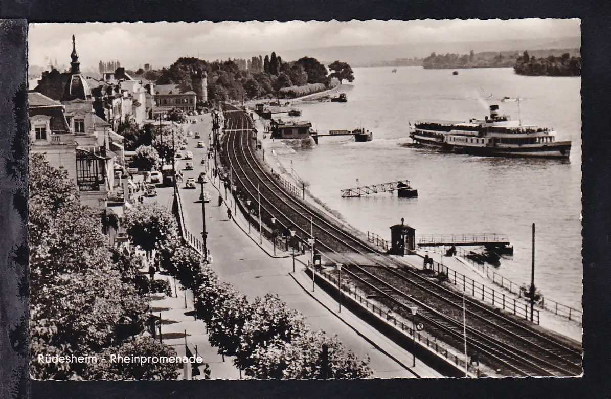 Rüdesheim (Rheinpromenade mit Dampfer Rheinland), 1956