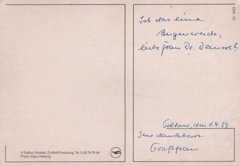 Ich hatte die Rechnung sofort als Vorkasse bezahlt, aber keine Zusendung der Karte erhalten. Trotz Nachfrage keine Rückmeldung bzw. Erklärung. Da es sich zum Glück nur um 1,70 € handelt, ist die Sache für mich erledigt, ärgerlich, aber zu verkraften. Mit den drei anderen Karten, die ich bestellt hatte, hat alles wunderbar geklappt.