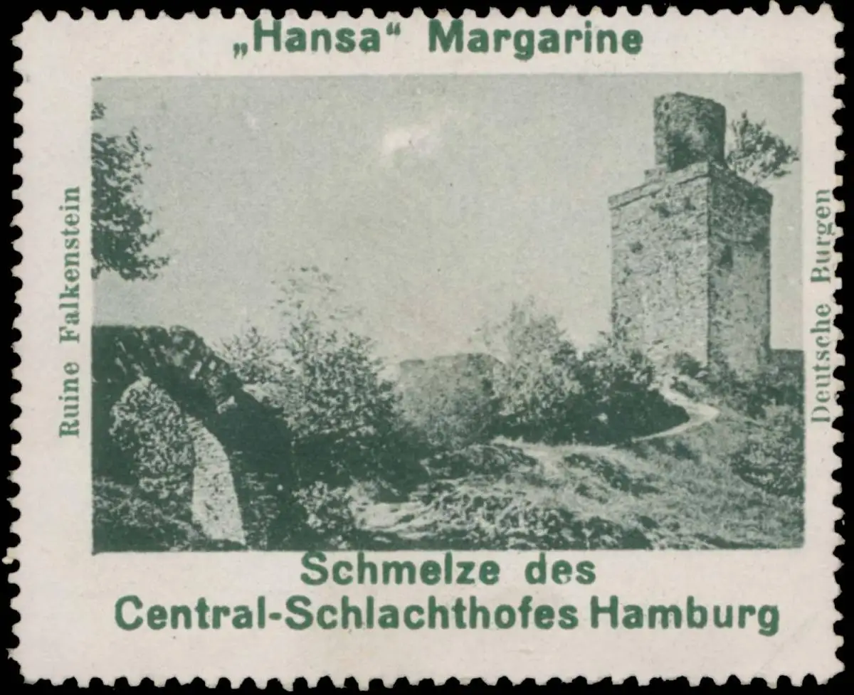 Deutsche Burgen, Hansa-Margarine, Schmelze des Central-Schlachthofes , Größe/Zustand: 5x6 , guter Zustand, Original alte Reklamemarke die seinerzeit für die Werbung benutzt wurde