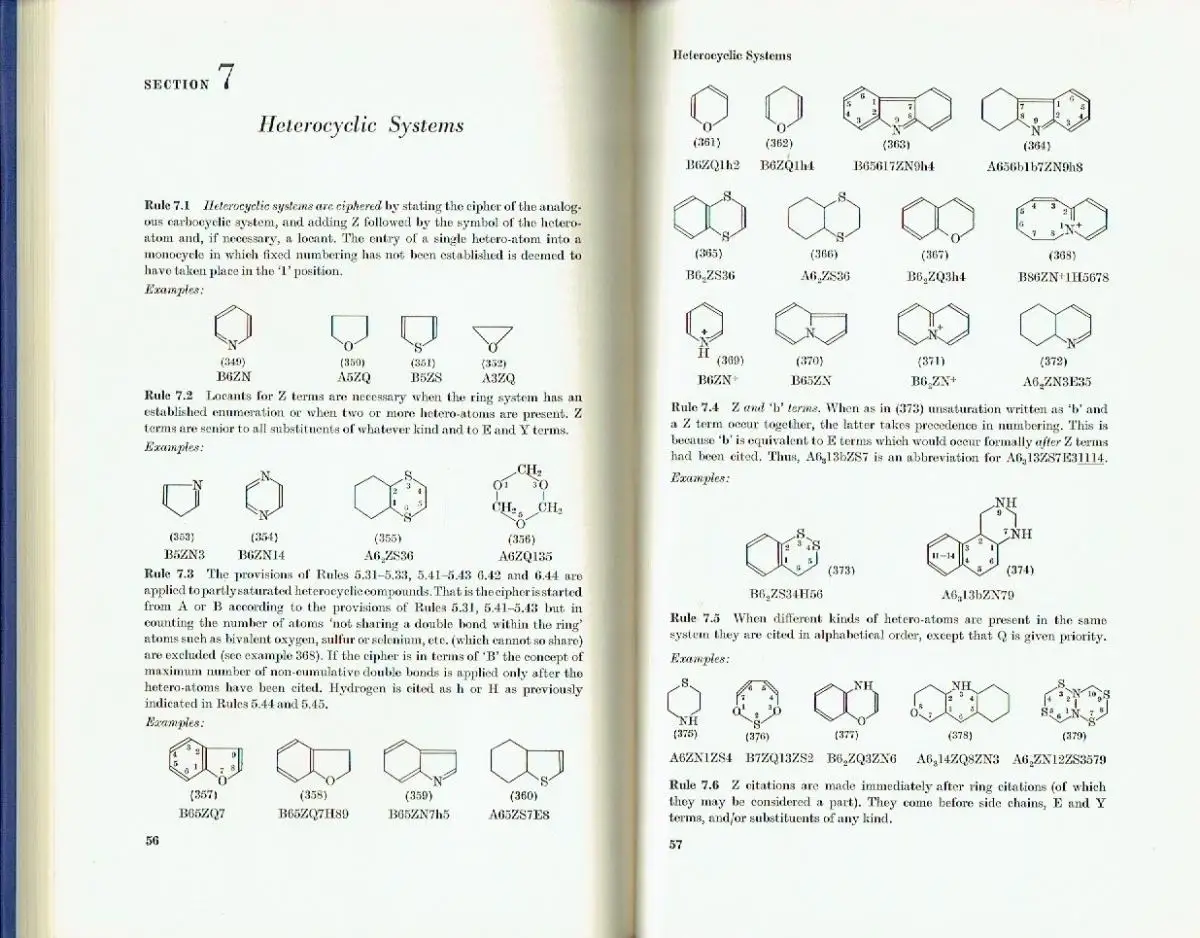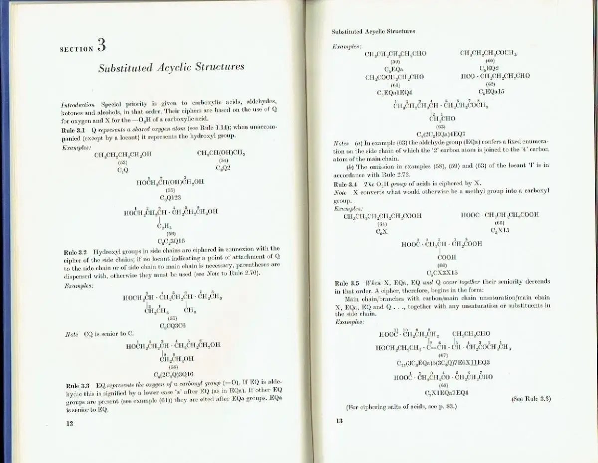 sehr guter Zustand, geringe Gebrauchs- und Alterungsspuren: alter Besitzeraufkleber im hinteren Vorsatz, Introduction - Symbols - Acyclic Hydrocarbons - Substituted Acyclic Structures - Aliphatic Heterogeneous Structures - Carbocyclic Compounds with One Ring - Ring Aggregates - Heterocyclic Systems - Assembly Notation of Cyclic Compounds - Compounds with Elements other than C, H, O, N, S and Halogens - Stereoisomerism - Abnormal Valencies, Salts, Isotopes and Persubstitution - APPENDIX - Arrangement of Ciphers in Index Form - Deciphering - Some Examples of Ciphering - Special Examples - Index, Kunstleder, ca. 16 x 25, 107 Seiten