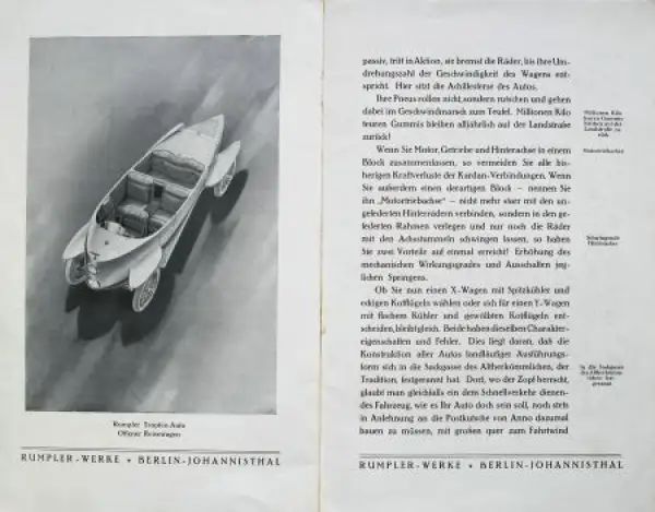 Rumpler Tropfenwagen Modellprogramm 1922 Original Automobilprospekt (4599)