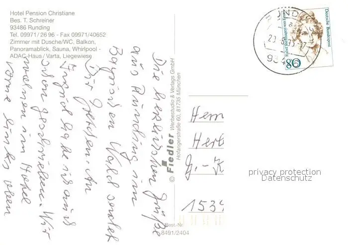 Runding_Cham Hotel Pension Christiane Panorama Runding Cham postalisch gelaufen 1993 Erhaltung siehe scans [WerneD78] WernPID7