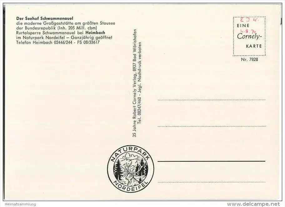Rurtalsperre Schwammenauel - Seehof - Verlag Robert Cornely Bad Wörishofen (G37150) *