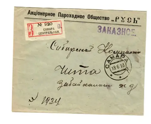 Rus: 1913 Campa Einschreiben von SAMARA nach TSCHITA