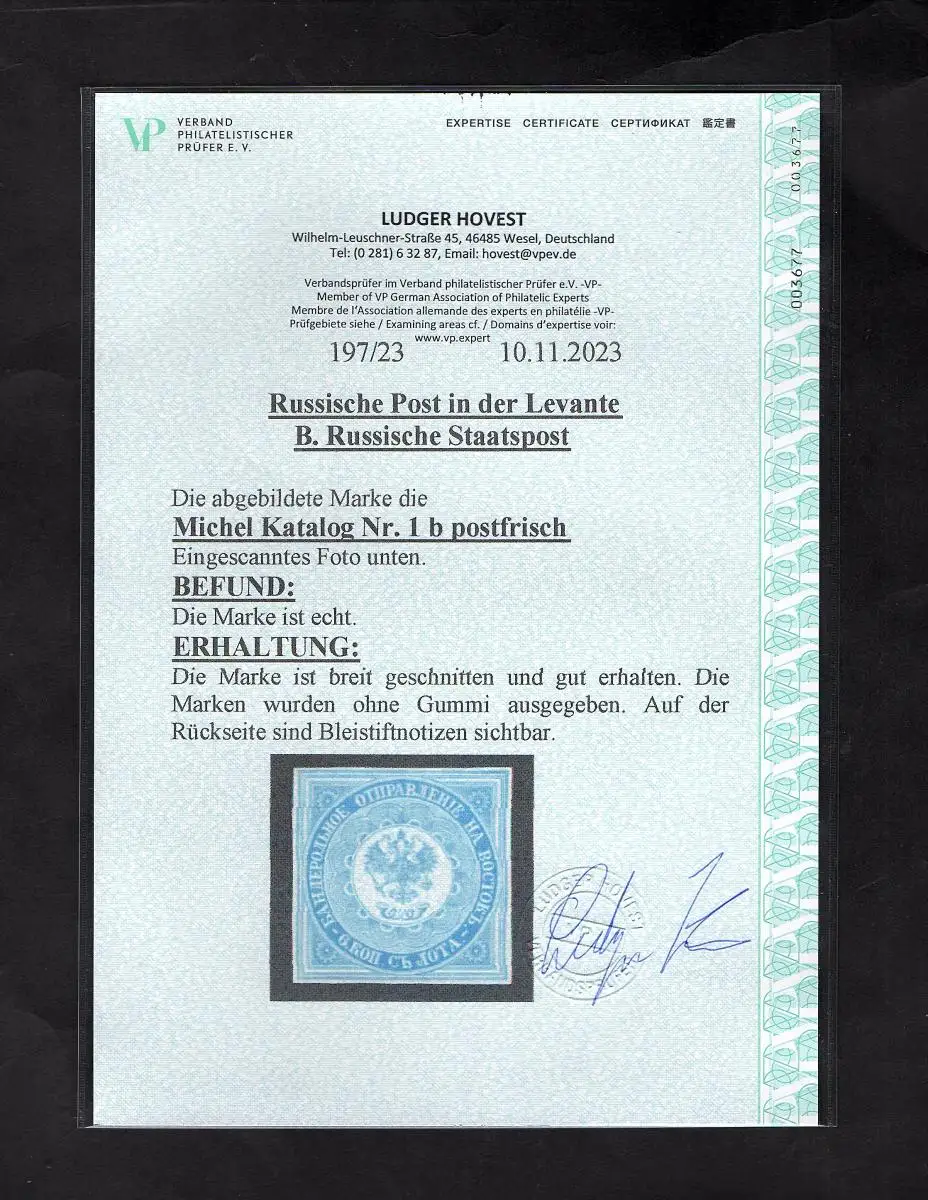 Russische Post in der Levante, B. Russ. Stadtpost Mi.-Nr. 1 b post. FA. Hovest