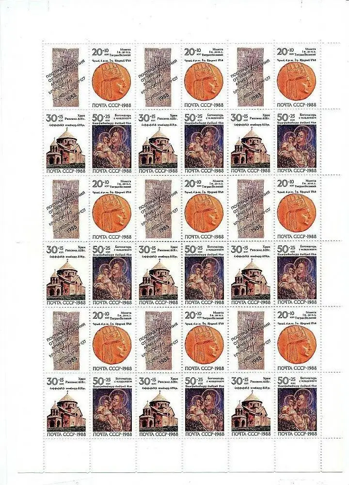 Russischer Mischblock 1988, ** oberer -und linker Rand nicht durchstochen
