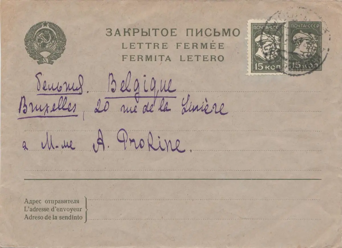 Russland: 1932 Brief Ganzsache U33 nach Belgien